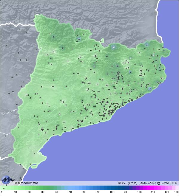 | 29-07-2023 | | | Máx. | Mín. | | | Temperatura | 30,4 | 22,0 | °C | | Humedad | 98 | 55 | % | | Viento | 39 | n/a | km/h | | Presión | 1.015 | 1.013 | hPa | | Precipitación | 0,0 | mm |