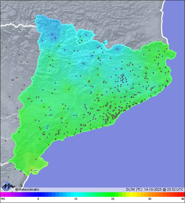 | 14-10-2023 | | | Máx. | Mín. | | | Temperatura | 28,7 | 16,5 | °C | | Humedad | 94 | 40 | % | | Viento | 36 | n/a | km/h | | Presión | 1.020 | 1.017 | hPa | | Precipitación | 0,0 | mm |
