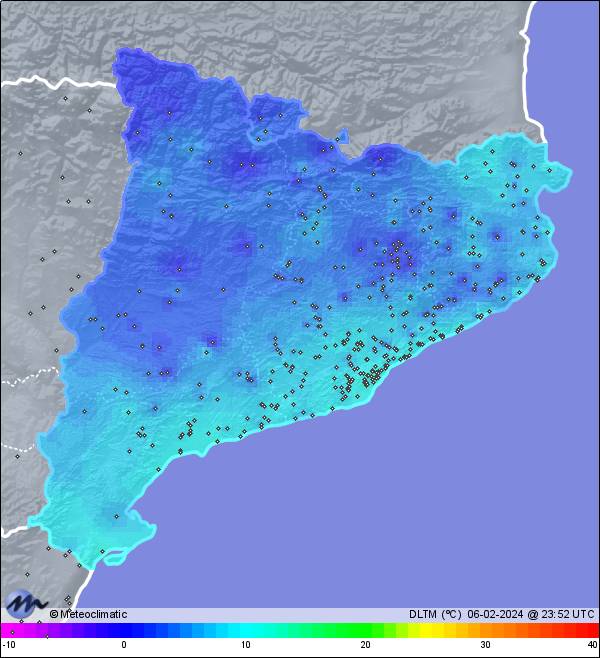 | 06-02-2024 | | | Máx. | Mín. | | | Temperatura | 6,3 | 3,6 | °C | | Humedad | 99 | 99 | % | | Presión | 1.027 | 1.022 | hPa | | Precipitación | 0,0 | mm |