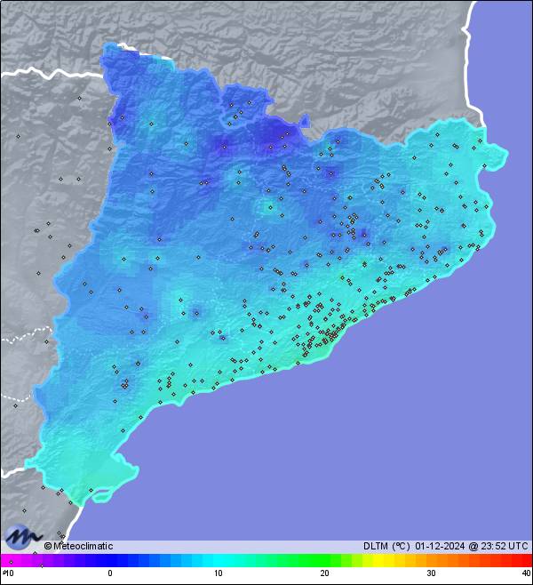 | Bagà (nord) | 865 | n/a | 15,2 | 2,2 | n/a | 98 | 63 | n/a | 1.027 | 1.023 | n/a | 6 | 0,2 | 1.012,0 | |