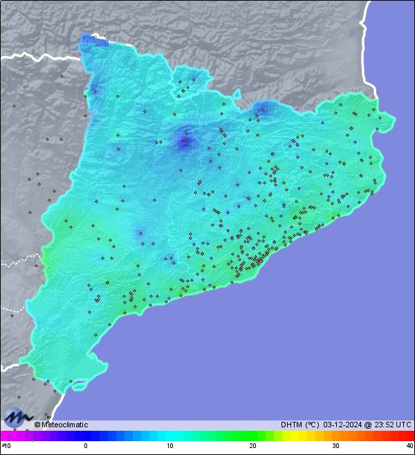 | 03-12-2024 | | | Máx. | Mín. | | | Temperatura | 13,6 | 7,9 | °C | | Humedad | 95 | 66 | % | | Viento | 22 | n/a | km/h | | Presión | 1.020 | 1.016 | hPa | | Precipitación | 0,3 | mm |