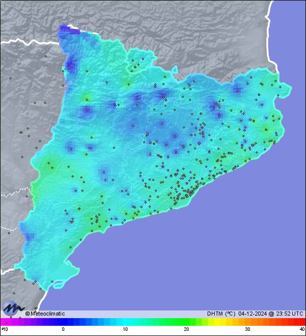 | 04-12-2024 | | | Máx. | Mín. | | | Temperatura | 13,6 | 6,9 | °C | | Humedad | 92 | 56 | % | | Viento | 40 | n/a | km/h | | Presión | 1.026 | 1.017 | hPa | | Precipitación | 0,0 | mm |