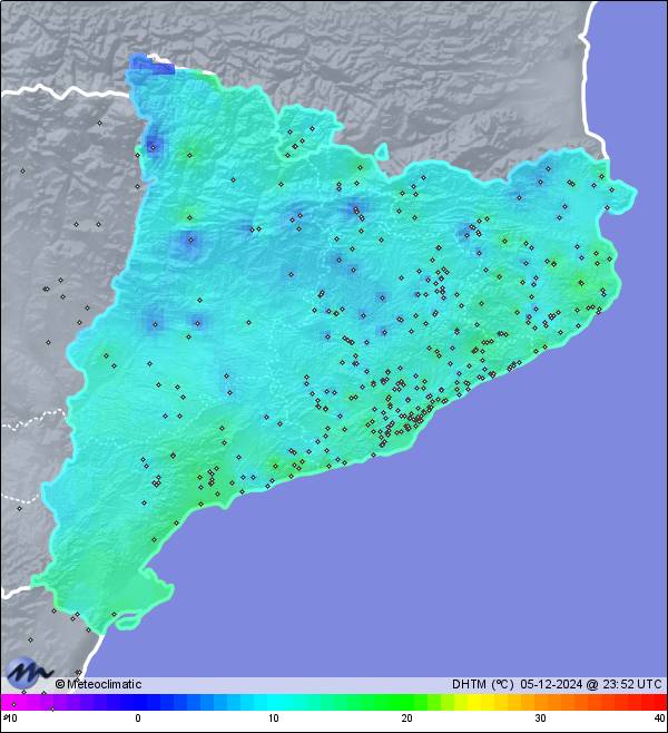 | 05-12-2024 | | | Máx. | Mín. | | | Temperatura | 17,2 | 11,3 | °C | | Humedad | 71 | 52 | % | | Viento | 39 | n/a | km/h | | Presión | 1.029 | 1.027 | hPa | | Precipitación | 0,0 | mm |