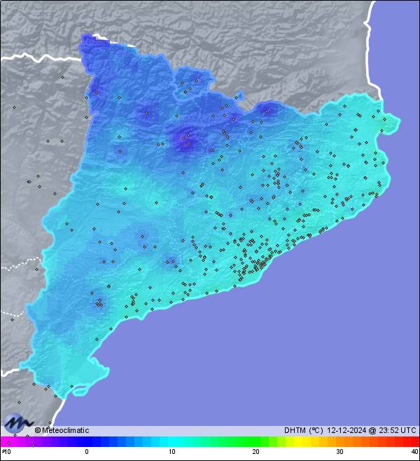 | 12-12-2024 | | | Máx. | Mín. | | | Temperatura | 6,9 | 3,5 | °C | | Humedad | 94 | 87 | % | | Viento | 13 | n/a | km/h | | Presión | 1.023 | 1.020 | hPa | | Precipitación | 0,8 | mm |