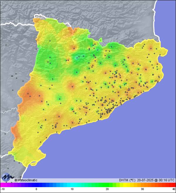 | 19-07-2025 | | | Máx. | Mín. | | | Temperatura | 30,8 | 21,2 | °C | | Humedad | 96 | 54 | % | | Viento | 24 | n/a | km/h | | Presión | 1.013 | 1.010 | hPa | | Precipitación | 0,2 | mm |