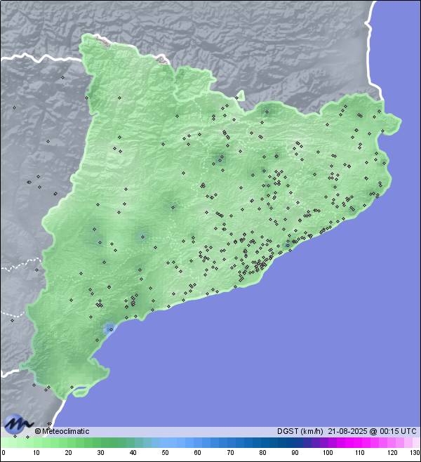 | 20-08-2025 | | | Máx. | Mín. | | | Temperatura | 30,4 | 21,4 | °C | | Humedad | 84 | 31 | % | | Viento | 40 | n/a | km/h | | Presión | 1.009 | 1.006 | hPa | | Precipitación | 0,0 | mm |