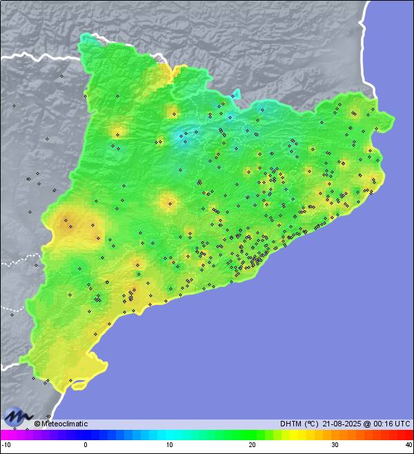 | 20-08-2025 | | | Máx. | Mín. | | | Temperatura | 29,1 | 21,2 | °C | | Humedad | 93 | 44 | % | | Viento | 35 | n/a | km/h | | Presión | 1.011 | 1.009 | hPa | | Precipitación | 0,0 | mm |