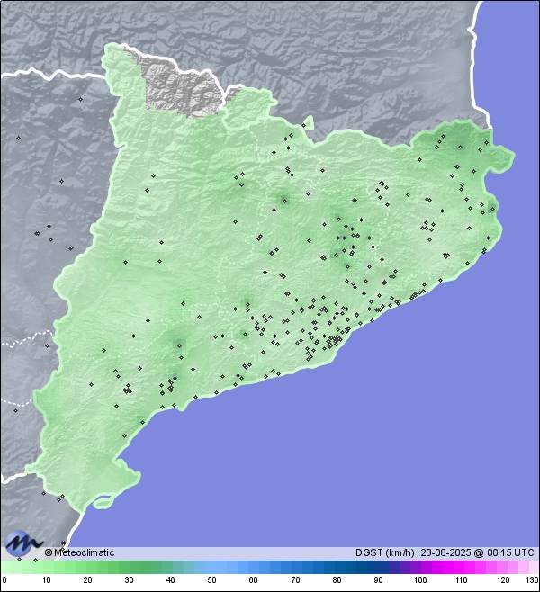 | 22-08-2025 | | | Máx. | Mín. | | | Temperatura | 30,1 | 17,7 | °C | | Humedad | 82 | 42 | % | | Viento | 45 | n/a | km/h | | Presión | 1.017 | 1.014 | hPa | | Precipitación | 0,0 | mm |