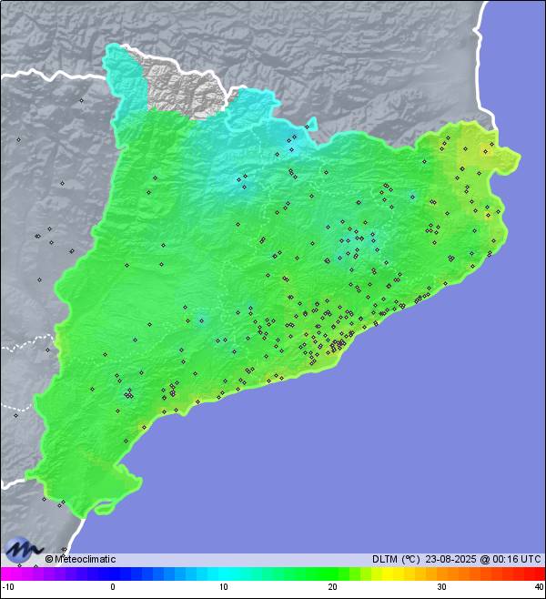 | 22-08-2025 | | | Máx. | Mín. | | | Temperatura | 29,6 | 16,6 | °C | | Humedad | 79 | 37 | % | | Viento | 39 | n/a | km/h | | Presión | 1.016 | 1.015 | hPa | | Precipitación | 0,0 | mm |