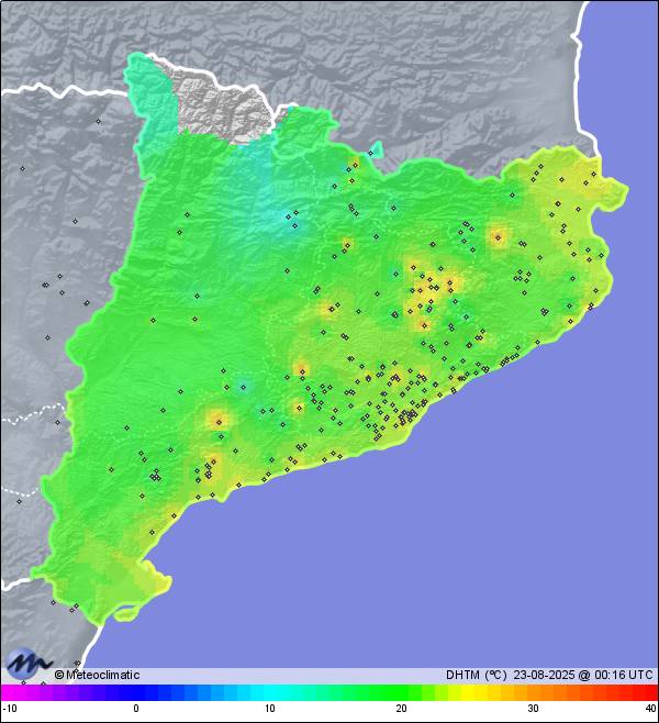 | 22-08-2025 | | | Máx. | Mín. | | | Temperatura | 29,4 | 20,7 | °C | | Humedad | 74 | 37 | % | | Viento | 35 | n/a | km/h | | Presión | 1.019 | 1.017 | hPa | | Precipitación | 0,0 | mm |