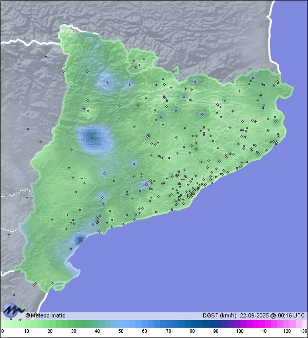 | 21-09-2025 | | | Máx. | Mín. | | | Temperatura | 23,8 | 14,6 | °C | | Humedad | 95 | 70 | % | | Viento | 35 | n/a | km/h | | Presión | 1.014 | 1.009 | hPa | | Precipitación | 3,2 | mm |