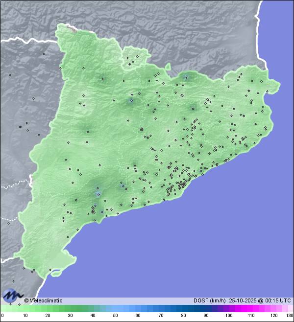 | 24-10-2025 | | | Máx. | Mín. | | | Temperatura | 15,5 | 7,9 | °C | | Humedad | 95 | 36 | % | | Viento | 47 | n/a | km/h | | Presión | 1.022 | 1.019 | hPa | | Precipitación | 0,0 | mm |