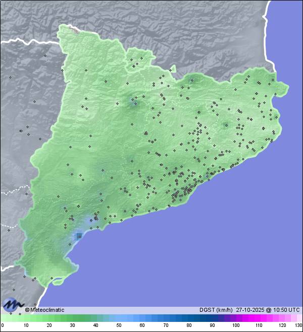 | Puigllançada- Coll de Pal | 2092 | 7,4 | 7,4 | 2,7 | 35 | 41 | 30 | 1.016 | 1.016 | 1.015 | 15 WNW | 29 | - | 796,6 | |