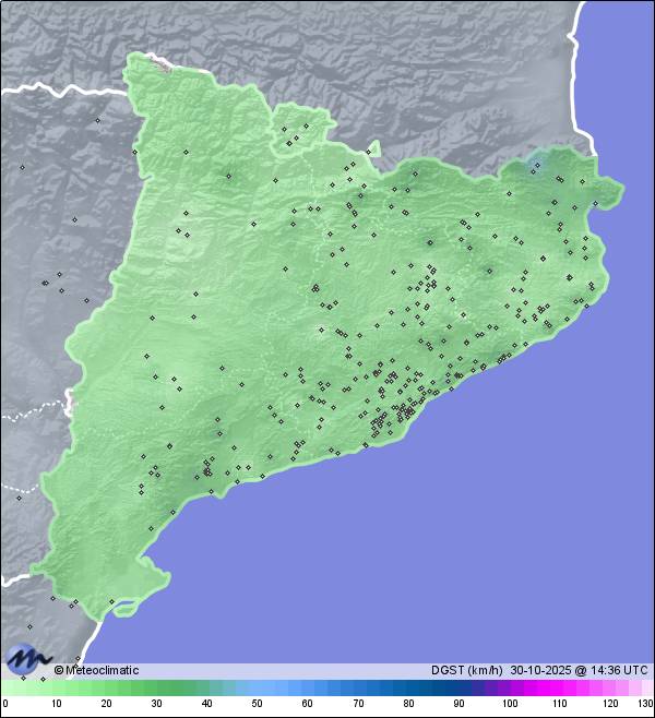 | Act. | Máx. | Mín. | Act. | Máx. | Mín. | Act. | Máx. | Mín. | Act. | Máx.  | Hoy | Año |  |  | Sant Feliu de Llobregat | 48 | 16,7 | 17,2 | 15,0 | 88 | 93 | 88 | 1.015 | 1.015 | 1.011 | 14 WSW | 56 | - | 405,9 |  |  |  | Pineda de Mar - Les Creus | 30 | 19,3 | 19,3 | 14,2 | 73 | 95 | 73 | 1.014 | 1.014 | 1.010 | 2 SSE | 40 | 0,5 | 571,7 |  |  |  | Puigllançada- Coll de Pal | 2092 | 7,9 | 7,9 | 5,1 | 78 | 85 | 73 | 1.010 | 1.010 | 1.008 | 8 SSW | 39 | - | - |  |  |  | Calella | 7 | 18,3 | 19,7 | 16,9 | 73 | 79 | 68 | 1.011 | 1.011 | 1.008 | 8 ESE | 35 | 0,2 | 455,4 |  |  |  | Cornella de Llobregat | 47 | 17,7 | 17,7 | 15,2 | 78 | 88 | 78 | 1.011 | 1.011 | 1.010 | 9 NW | 33 | - | 485,0 |  |  |  | Barcelona - Casa  l'Aigua | 70 | 15,1 | 18,3 | 14,3 | 94 | 94 | 81 | 1.011 | 1.011 | 1.007 | 11 NNW | 32 | - | 488,2 |  |  |  | Bellmunt | 1241 | 8,9 | 11,6 | 8,7 | 92 | 95 | 77 | 1.010 | 1.010 | 1.008 | 13 W | 32 | 0,4 | 718,2 |  |  |  | Cabrera de Mar-SJoan Munt | 170 | 18,9 | 19,0 | 14,8 | 80 | 91 | 78 | 1.011 | 1.012 | 1.010 | 16 ENE | 32 | - | 700,8 |  |  |  | Sant Feliu deLlob.S.Josep | 26 | 17,1 | 17,1 | 14,1 | 82 | 95 | 82 | 1.011 | 1.011 | 1.007 | 15 NNW | 32 | 0,1 | 26,8 |  |  |  | Barcelona - Tibidabo | 512 | 14,0 | 15,1 | 13,3 | 91 | 93 | 88 | 1.013 | 1.013 | 1.009 | 19 WNW | 31 | - | 527,4 |  |  |  | Mataró-Parc de Créteil | 105 | 18,5 | 18,6 | 14,6 | 77 | 88 | 76 | 1.010 | 1.010 | 1.006 | 17 NNW | 30 | 0,2 | 489,9 |  |  |  | Bellmunt - Santuari | 1246 | 9,8 | 11,3 | 9,1 | 94 | 94 | 81 | 1.014 | 1.014 | 1.011 | 10 WNW | 29 | - | 697,4 |  |  |  | Pineda de Mar - Nord | 45 | 18,9 | 19,2 | 15,6 | 74 | 87 | 73 | 1.011 | 1.011 | 1.008 | 7 ENE | 29 | 0,2 | 591,2 |  |  |  | Sitges | 25 | 19,3 | 19,3 | 17,4 | 76 | 82 | 76 | 1.013 | 1.013 | 1.009 | 3 N | 29 | - | 312,6 |  |  |  | Barcelona - Horta | 100 | 18,2 | 18,2 | 15,3 | 78 | 90 | 77 | 1.009 | 1.009 | 1.005 | 7 W | 28 | - | 552,7 |  |  |  | Santa Susanna | 48 | 17,9 | 19,1 | 16,1 | 75 | 89 | 73 | 1.014 | 1.014 | 1.010 | 2 E | 28 | 0,5 | 606,3 |  |  |  | Viladecans | 53 | 20,2 | 22,2 | 15,9 | 76 | 91 | 68 | 1.008 | 1.008 | 1.004 | 3 E | 28 | - | 500,1 |  |  |  | Badalona - BCIN | 81 | 17,9 | 18,8 | 16,1 | 82 | 91 | 82 | 1.014 | 1.014 | 1.010 | 16 NW | 27 | - | 277,2 |  |  |  | Barcelona - Gràcia | 105 | 19,7 | 19,7 | 16,7 | 75 | 87 | 74 | 1.011 | 1.011 | 1.007 | 1 SSE | 27 | - | 416,8 |  |  |  | Barcelona - Sant Gervasi | 160 | 18,6 | 18,6 | 16,3 | 72 | 85 | 72 | 1.009 | 1.010 | 1.006 | 8 NW | 27 | - | 427,4 |  |  |  | Canet de Mar - Centre | 42 | 19,1 | 19,2 | 15,9 | 78 | 86 | 76 | 1.010 | 1.010 | 1.006 | 3 SSW | 27 | 0,2 | 462,0 |  |  |  | Dosrius Can Miloca | 488 | 17,1 | 17,1 | 12,2 | 82 | 97 | 82 | 1.013 | 1.013 | 1.009 | 2 ENE | 27 | - | 551,0 |  |  |  | La Garriga (Ajuntament) | 247 | 15,8 | 16,6 | 12,8 | 83 | 92 | 83 | 1.012 | 1.012 | 1.008 | 13 N | 27 | - | 802,2 |  |  |  | Sitges | 15 | 19,4 | 19,5 | 17,8 | 74 | 79 | 74 | 1.012 | 1.012 | 1.008 | 5 NNW | 27 | 0,3 | 366,0 |  |  |  | El Masnou - Ocata 2 | 7 | 21,4 | 21,5 | 15,9 | 68 | 90 | 67 | 1.011 | 1.011 | 1.007 | 5 S | 26 | 0,1 | 364,3 |  |  |  | L'Ametlla del Vallès | 647 | 15,1 | 15,2 | 12,9 | 86 | 93 | 83 | 1.010 | 1.010 | 1.006 | - | 26 | 0,4 | 870,8 |  |  |  | Llerona - Els Gorgs | 260 | 16,9 | 16,9 | 11,9 | 85 | 99 | 85 | x | x | x | 4 WNW | 26 | - | 742,2 |  |  |  | Matadepera - Centre | 426 | 17,2 | 17,2 | 11,7 | 78 | 100 | 78 | 1.013 | 1.013 | 1.009 | 9 SE | 26 | 0,3 | 730,9 |  |  |  | Sant Feliu Llob - Mestral | 112 | 17,4 | 17,4 | 15,2 | 83 | 93 | 83 | 1.009 | 1.009 | 1.005 | 8 NW | 26 | - | 499,8 |  |  |  | Mataró -Nord | 144 | 18,1 | 18,5 | 14,8 | 75 | 88 | 74 | 1.011 | 1.011 | 1.007 | 9 NW | 25 | 0,1 | 577,4 |  |  |  | Canet de Mar - Rial Oms | 50 | 17,8 | 17,9 | 14,1 | 88 | 91 | 83 | 1.012 | 1.012 | 1.008 | 6 SSW | 24 | 0,3 | 464,0 |  |  |  | Mataró - Vista Alegre | 105 | 18,9 | 18,9 | 14,8 | 74 | 84 | 74 | 1.011 | 1.011 | 1.007 | 6 N | 24 | 0,2 | 491,0 |  |  |  | Pineda de Mar - Centre | 9 | 19,1 | 19,1 | 15,5 | 73 | 87 | 73 | 1.011 | 1.011 | 1.008 | 3 ESE | 24 | 0,6 | 615,4 |  |  |  | Sant Feliu de Llob.El Pla | 21 | 16,7 | 17,0 | 14,6 | 91 | 97 | 90 | 1.009 | 1.009 | 1.005 | 6 NNE | 24 | - | 462,4 |  |  |  | Barcelona - Can Bruixa | 61 | 19,9 | 19,9 | 17,1 | 66 | 82 | 66 | 1.011 | 1.011 | 1.007 | 5 WNW | 23 | - | 541,0 |  |  |  | Cadí Est- PN Cadí-Moixeró | 2440 | 5,1 | 5,1 | 2,6 | 72 | 96 | 68 | x | x | x | 13 S | 23 | 0,2 | - |  |  |  | El Masnou - Ocata | 10 | 19,8 | 20,0 | 16,9 | 74 | 87 | 73 | 1.012 | 1.012 | 1.007 | 5 WNW | 23 | 0,2 | 525,2 |  |  |  | El Prat-Zonilla | 4 | 16,4 | 17,4 | 15,2 | 90 | 92 | 88 | 1.012 | 1.012 | 1.009 | 10 W | 23 | - | 281,0 |  |  |  | Vallbona d'Anoia | 289 | 14,1 | 15,0 | 12,2 | 97 | 98 | 96 | 1.012 | 1.012 | 1.008 | 11 WNW | 23 | 0,8 | 725,0 |  |  |  | Badalona - Centre | 30 | 17,7 | 18,2 | 16,0 | 84 | 90 | 84 | 1.012 | 1.012 | 1.008 | 11 WSW | 21 | - | 381,6 |  |  |  | Badalona - Progres | 27 | 18,2 | 18,9 | 16,7 | 81 | 88 | 80 | 1.012 | 1.012 | 1.008 | 9 WNW | 21 | - | 380,4 |  |  |  | Barcelona Sants-Montjuïc | 45 | 19,6 | 19,6 | 16,3 | 73 | 88 | 72 | 1.010 | 1.010 | 1.007 | 3 SSW | 21 | 0,2 | 480,4 |  |  |  | Castellar del Vallès | 331 | 17,6 | 17,6 | 12,9 | 78 | 92 | 78 | 1.013 | 1.013 | 1.010 | 2 SW | 21 | 0,4 | 695,4 |  |  |  | Collsuspina - Centre | 901 | 10,9 | 12,0 | 8,6 | 99 | 99 | 97 | 1.012 | 1.012 | 1.009 | 6 W | 21 | 0,6 | 617,4 |  |  |  | Sant Boi - Molí Nou | 26 | 16,4 | 16,7 | 14,8 | 85 | 89 | 85 | 1.011 | 1.011 | 1.007 | 5 NNW | 21 | - | 508,4 |  |  |  | Veciana | 608 | 12,8 | 13,4 | 12,7 | 97 | 97 | 96 | 1.013 | 1.013 | 1.009 | 12 W | 21 | 0,2 | 483,8 |  |  |  | Barcelona-Eixample Esq. | 20 | 19,7 | 20,0 | 17,0 | 71 | 85 | 68 | 1.011 | 1.012 | 1.007 | 5 W | 20 | 0,3 | 968,3 |  |  |  | L'Hospitalet de Llobregat | 20 | 19,3 | 19,3 | 16,8 | 75 | 85 | 75 | 1.008 | 1.008 | 1.004 | 5 WNW | 20 | - | 495,2 |  |  |  | Sant Climent de Llobrega