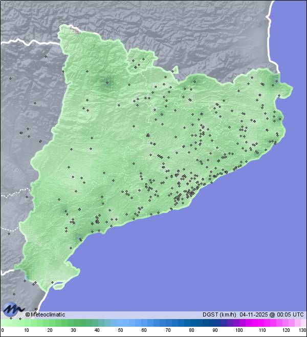 | Puigllançada- Coll de Pal | 2092 | 4,7 | 9,3 | 0,8 | 94 | 94 | 48 | 1.021 | 1.022 | 1.018 | 6 ESE | 55 | - | - | |