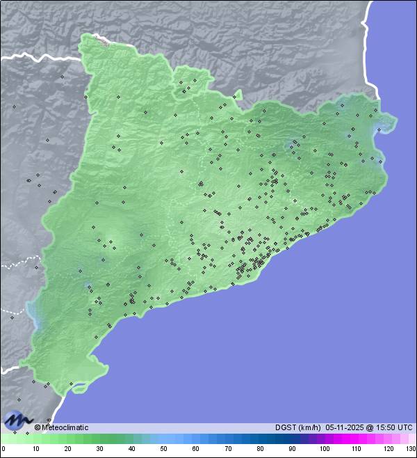 | Cadí Est- PN Cadí-Moixeró | 2440 | 10,2 | 11,4 | 7,3 | 49 | 68 | 14 | x | x | x | 29 SSW | 37 | - | - | |