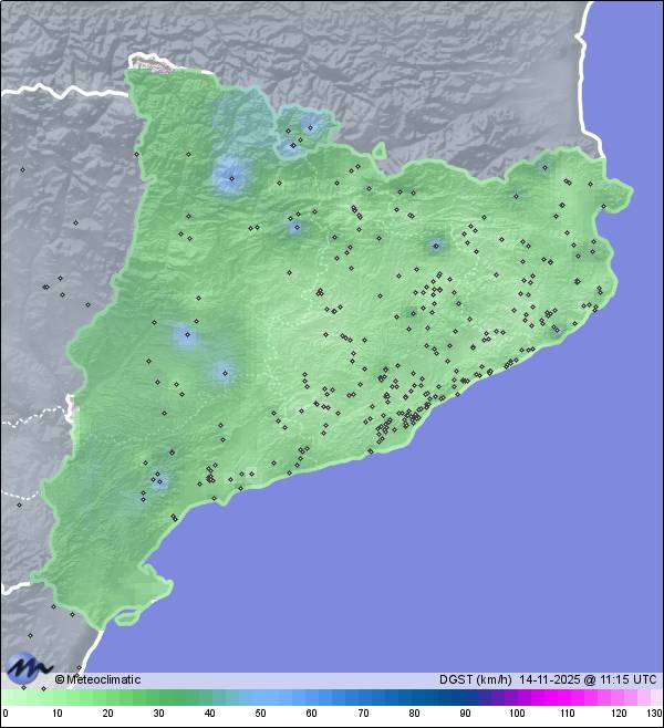 | Puigllançada- Coll de Pal | 2092 | 5,4 | 7,1 | 5,4 | 91 | 93 | 64 | 1.010 | 1.014 | 1.008 | 48 SSW | 87 | 0,2 | - | |