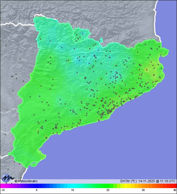 | Barcelona-Eixample Esq. | 20 | 20,4 | 20,4 | 18,6 | 82 | 90 | 81 | 1.011 | 1.013 | 1.010 | 3 ESE | 13 | - | 988,6 | |