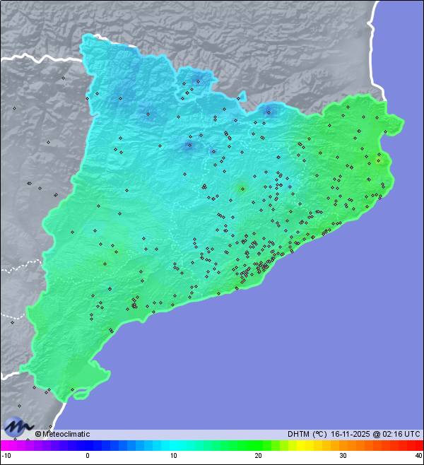 | Montseny - Les Arrels | 435 | 16,4 | 16,5 | 14,7 | 83 | 83 | 77 | 1.007 | 1.008 | 1.007 | 3 ESE | 21 | - | 1.087,4 | |