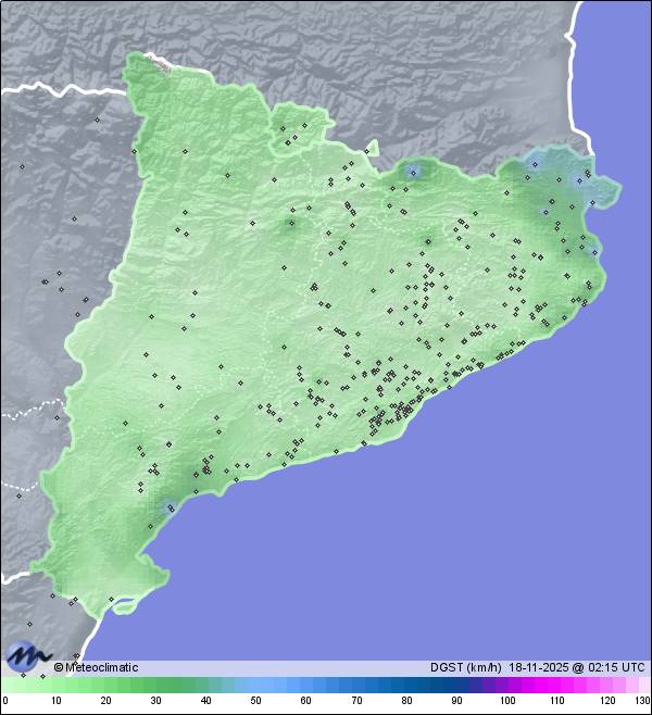 | Puigllançada- Coll de Pal | 2092 | 1,1 | 1,1 | 0,6 | 63 | 80 | 63 | 1.009 | 1.009 | 1.008 | 40 WNW | 58 | - | - | |