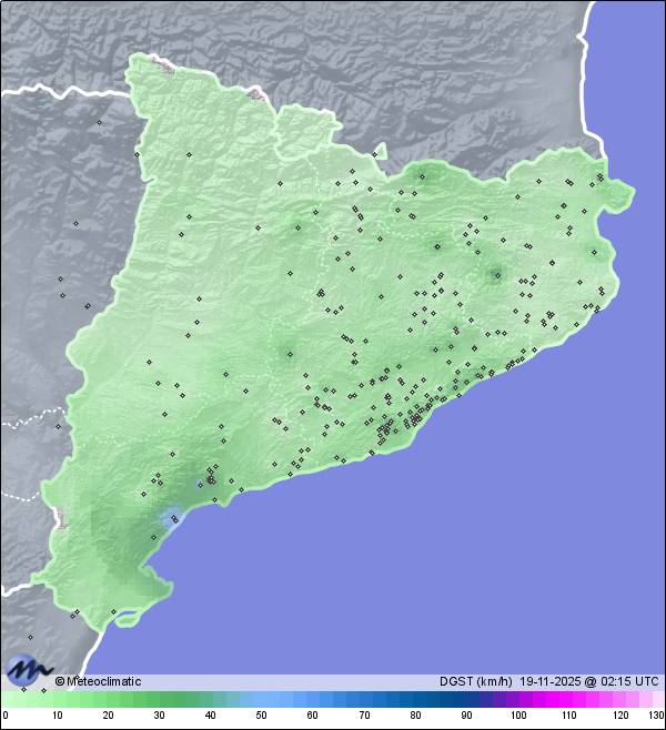 | Montseny - Can Cervera | 710 | 6,8 | 7,2 | 6,2 | 72 | 77 | 71 | 1.015 | 1.016 | 1.015 | 5 NW | 19 | - | 994,4 | |