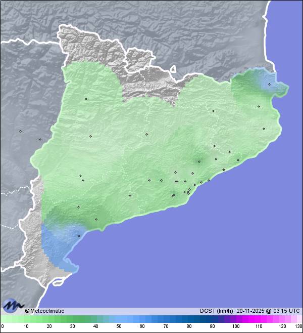 | Montseny - Can Cervera | 710 | 4,4 | 4,5 | 3,9 | 65 | 67 | 63 | 1.013 | 1.013 | 1.013 | 6 NE | 18 | - | 994,4 | |