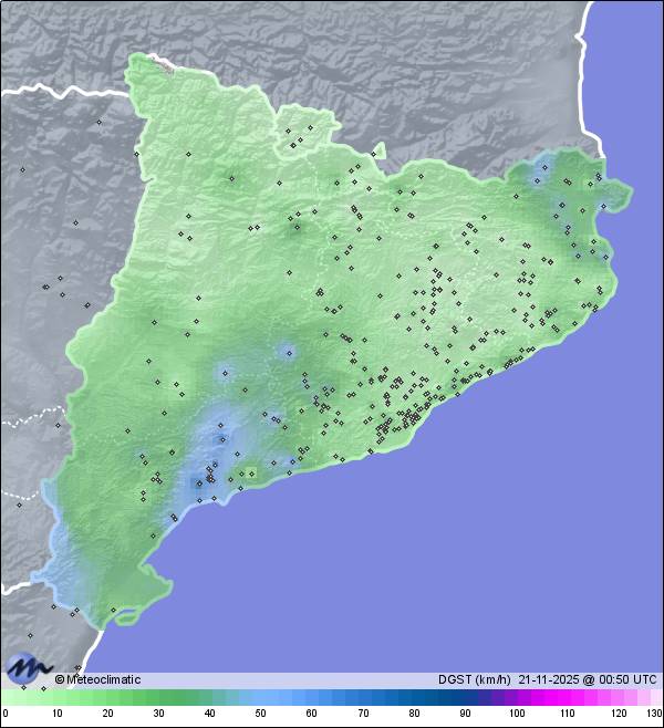 | Collsuspina - Centre | 901 | -0,7 | 9,4 | -3,0 | 92 | 97 | 70 | 1.014 | 1.016 | 1.014 | 5 WSW | 27 | - | 678,4 | |