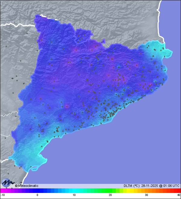 | Puigllançada- Coll de Pal | 2092 | -3,0 | -2,9 | -3,3 | 16 | 17 | 16 | 1.012 | 1.014 | 1.012 | 47 NNW | 48 | - | - | |