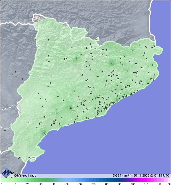 | Puigllançada- Coll de Pal | 2092 | 2,1 | 2,7 | 2,0 | 37 | 38 | 32 | 1.006 | 1.006 | 1.006 | 19 WSW | 26 | - | - | |