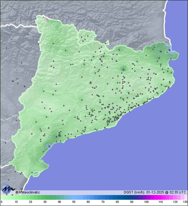 | Mataró-Can Canyellas | 144 | 9,3 | 9,3 | 8,5 | 74 | 79 | 74 | 1.017 | 1.017 | 1.017 | 14 NNW | 16 | - | 588,0 | |