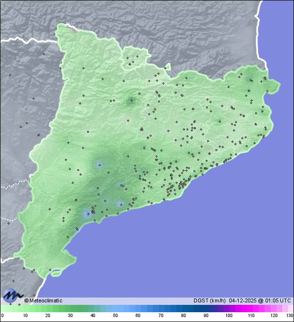 | Puigllançada- Coll de Pal | 2092 | -3,4 | -3,0 | -3,5 | 77 | 79 | 70 | 1.005 | 1.006 | 1.005 | 34 WNW | 40 | - | - | |