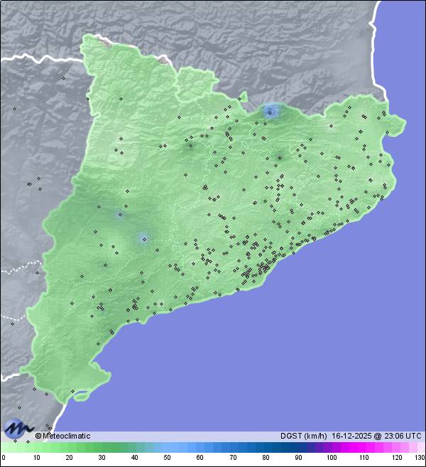 | Puigllançada- Coll de Pal | 2092 | 0,1 | 0,7 | -1,1 | 98 | 99 | 98 | 1.005 | 1.006 | 1.003 | 13 ESE | 63 | 0,2 | - | |