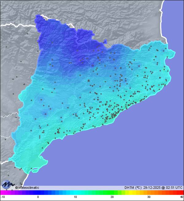 | Barcelona - Plaça Sants | 40 | 12,6 | 13,3 | 12,6 | 86 | 86 | 85 | 1.019 | 1.020 | 1.019 | 3 NNE | 13 | - | 656,6 | |