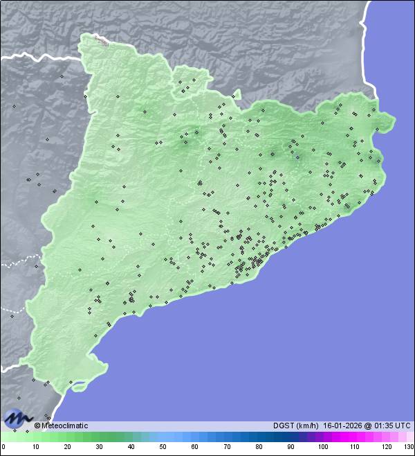 | Puigllançada- Coll de Pal | 2092 | 0,1 | 0,1 | -0,2 | 42 | 51 | 42 | 1.008 | 1.008 | 1.008 | 35 WSW | 44 | - | - | |