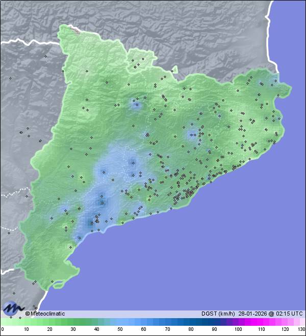 | Sentfores (La Guixa) | 512 | 6,9 | 7,2 | 6,9 | 84 | 85 | 84 | 993 | 993 | 993 | 35 SSW | 63 | - | 102,4 | |