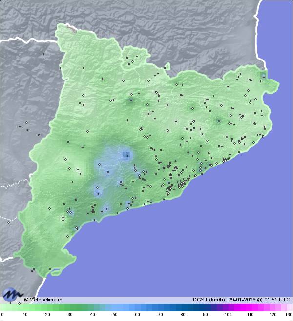 | Barcelona - Plaça Sants | 40 | 9,5 | 9,5 | 8,4 | 70 | 73 | 70 | 1.001 | 1.002 | 1.001 | 19 WNW | 45 | - | 95,2 | |