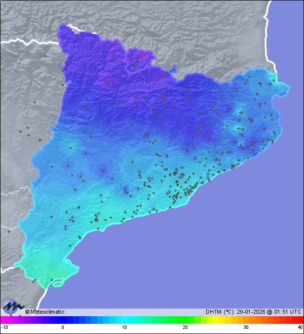 | Barcelona - Plaça Sants | 40 | 9,5 | 9,5 | 8,4 | 70 | 73 | 70 | 1.001 | 1.002 | 1.001 | 19 WNW | 45 | - | 95,2 | |