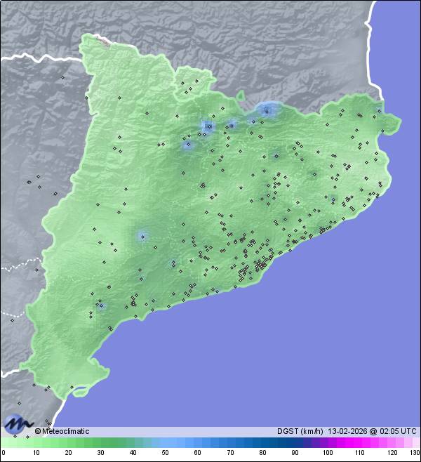| Bagà (refugi Rebost) PN | 1640 | 2,5 | 2,7 | 2,3 | 58 | 58 | 57 | 1.006 | 1.008 | 1.006 | 32 WNW | 35 | - | - | |