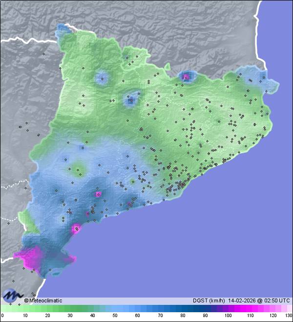 | Puigllançada- Coll de Pal | 2092 | -3,1 | -2,6 | -3,1 | 97 | 97 | 97 | 981 | 981 | 979 | 29 WNW | 40 | - | - | |