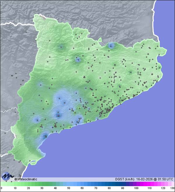 | Puigllançada- Coll de Pal | 2092 | 1,5 | 1,5 | 0,8 | 78 | 84 | 78 | 1.010 | 1.010 | 1.009 | 27 WNW | 45 | - | - | |