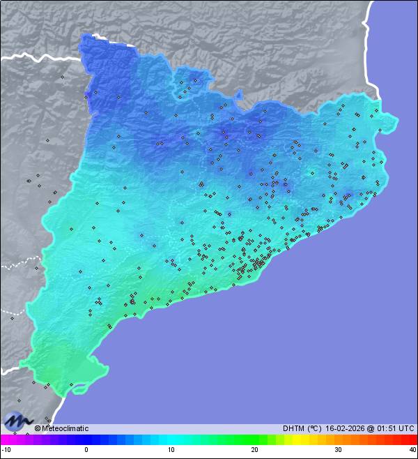 | Molins de Rei-de les eres | 37 | 12,8 | 12,9 | 12,8 | 64 | 64 | 64 | 1.017 | 1.018 | 1.017 | 5 WNW | 16 | - | 123,0 | |