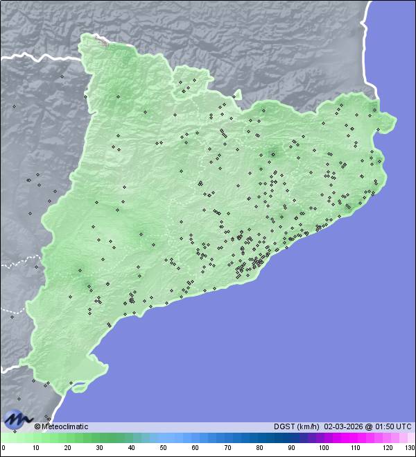 | Puigllançada- Coll de Pal | 2092 | -1,9 | -1,9 | -2,6 | 88 | 98 | 88 | 1.015 | 1.016 | 1.015 | 16 WSW | 19 | - | - | |