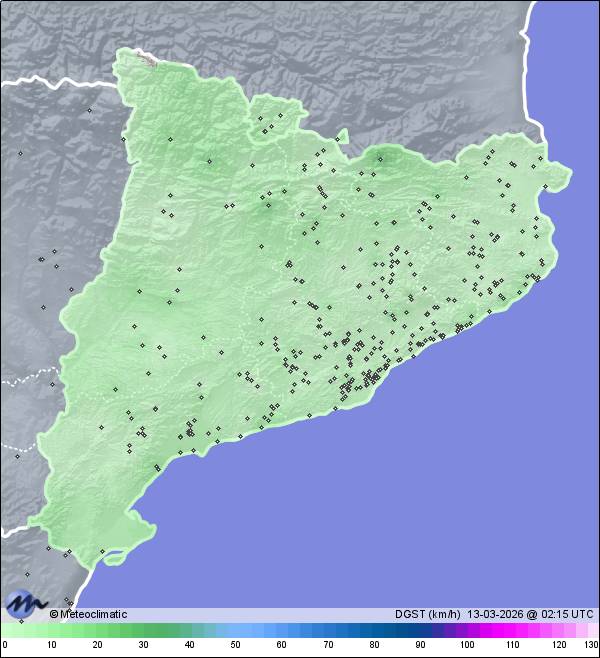 | Puigllançada- Coll de Pal | 2092 | 2,8 | 2,8 | 1,8 | 39 | 46 | 38 | 1.017 | 1.017 | 1.017 | 32 WNW | 35 | - | - | |