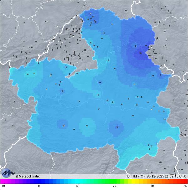 | Actualizado: 19:30 UTC | 5,0°C 93% | 6,9 °C / 95% | | 3,4°C / 88% | | Calma | | 10 km/h | | 1.012 hPa | | 1,8 mm |