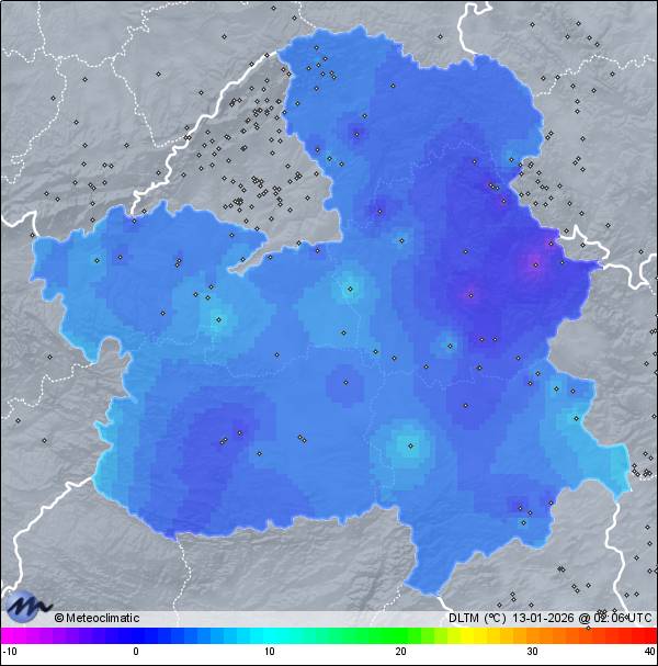| Actualizado:12-01-2026 23:58 UTC | 2,1°C 91% | 2,9 °C / 91% | | 1,8°C / 88% | | Calma | | 2 km/h | | 1.021 hPa |