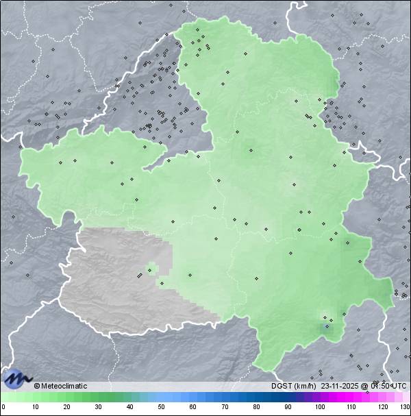 | Actualizado: 08:28 UTC | 6,6°C 72% | 6,6 °C / 89% | | -1,5°C / 70% | | 1 km/h S | | 13 km/h | | 1.034 hPa |