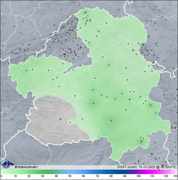 | Actualizado: 04:59 UTC | 7,2°C 90% | 7,7 °C / 97% | | 5,5°C / 87% | | 10 km/h E | | 20 km/h | | 1.024 hPa |