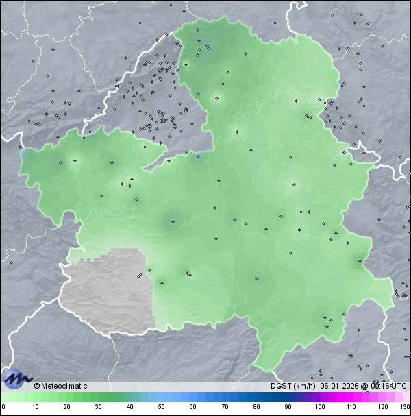 | Escarcha | | Actualizado: 07:15 UTC | -7,1°C 93% | -0,5 °C / 96% |  | | -7,1°C / 93% | | Calma | | 16 km/h | | 1.010 hPa |