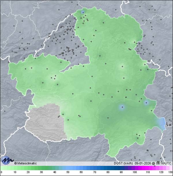 | Tamajón | 1045 | 1,6 | 1,6 | 1,1 | 99 | 99 | 98 | 1.026 | 1.027 | 1.026 | 13 SSW | 27 | - | 2,4 | |