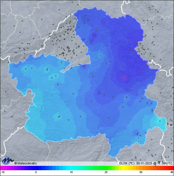 | Actualizado: 10:45 UTC | 3,6°C 89% | 4,9 °C / 96% | | 1,1°C / 89% | | 7 km/h N | | 30 km/h | | 1.016 hPa | | 10,6 mm |